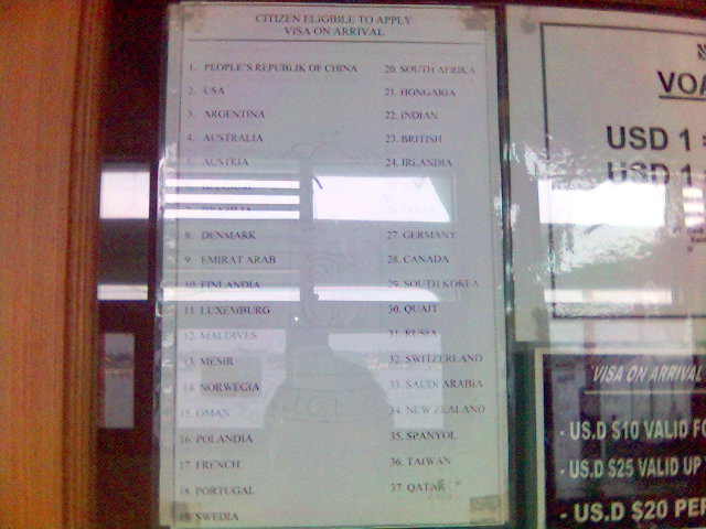 Foreigners, including Chinese, Indian, American, British, and Australian, can get a Visa-on-Arrival at the custom of TG. Pinang. (See the picture above)